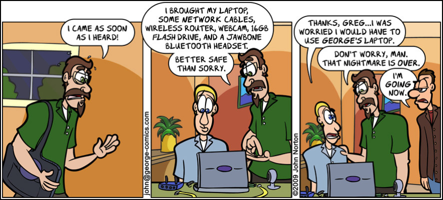 Just below, you’ll find an image gallery of all the old, archived George comics from years past. Specifically from 2005 through 2010! Everything after the 14-year gap to 2024 can be found in the main comics section of the website, accessible by clicking “Home,” above.
